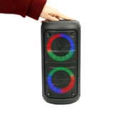اسپیکر بلوتوثی قابل حمل مدل KTS-1296، با توان خروجی 10 وات و ظاهر شیک و زیبا میتواند انتخاب خوبی برای گوش دادن و لذت بردن از موزیک دلخواهتان باشد. این اسپیکر دارای دو باند 3 اینچی و رقص نور است که هنگام پخش موزیک، زیبایی اسپیکر را دوچندان میکند. پشتیبانی از کارت حافظه و فلش مموری، بلوتوث، ورودی AUX و قابلیت اتصال میکروفون از ویژگیهای این اسپیکر قدرتمند است. این اسپیکر قادر است هم به صورت بیسیم و هم به صورت باسیم عمل کند. اتصال بیسیم دستگاه از طریق بلوتوث نسخه 5٫0 با برد 10 متر و اتصال باسیم آن از طریق رابط جک 3٫5 میلیمتری صدا امکانپذیر است. اسپیکر KTS-1296، از حافظههای جانبی رم microSD و فلش مموری USB برای پخش فایلهای صوتی ذخیره شده پشتیبانی میکند. شما میتوانید گوشی موبایل، لپتاپ، تلویزیون و سایر دستگاههای صوتی را از طریق عملکرد AUX Line-in از طریق کابل AUX متصل کنید. همچنین میتوانید موزیک موردعلاقه خود را روی فلش یا مموری ریخته و از طریق آنها اقدام به پخش صدای موردنظر خود کنید