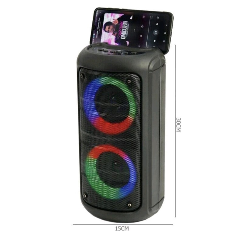 اسپیکر بلوتوثی قابل حمل مدل KTS-1296، با توان خروجی 10 وات و ظاهر شیک و زیبا میتواند انتخاب خوبی برای گوش دادن و لذت بردن از موزیک دلخواهتان باشد. این اسپیکر دارای دو باند 3 اینچی و رقص نور است که هنگام پخش موزیک، زیبایی اسپیکر را دوچندان میکند. پشتیبانی از کارت حافظه و فلش مموری، بلوتوث، ورودی AUX و قابلیت اتصال میکروفون از ویژگیهای این اسپیکر قدرتمند است. این اسپیکر قادر است هم به صورت بیسیم و هم به صورت باسیم عمل کند. اتصال بیسیم دستگاه از طریق بلوتوث نسخه 5٫0 با برد 10 متر و اتصال باسیم آن از طریق رابط جک 3٫5 میلیمتری صدا امکانپذیر است. اسپیکر KTS-1296، از حافظههای جانبی رم microSD و فلش مموری USB برای پخش فایلهای صوتی ذخیره شده پشتیبانی میکند. شما میتوانید گوشی موبایل، لپتاپ، تلویزیون و سایر دستگاههای صوتی را از طریق عملکرد AUX Line-in از طریق کابل AUX متصل کنید. همچنین میتوانید موزیک موردعلاقه خود را روی فلش یا مموری ریخته و از طریق آنها اقدام به پخش صدای موردنظر خود کنید