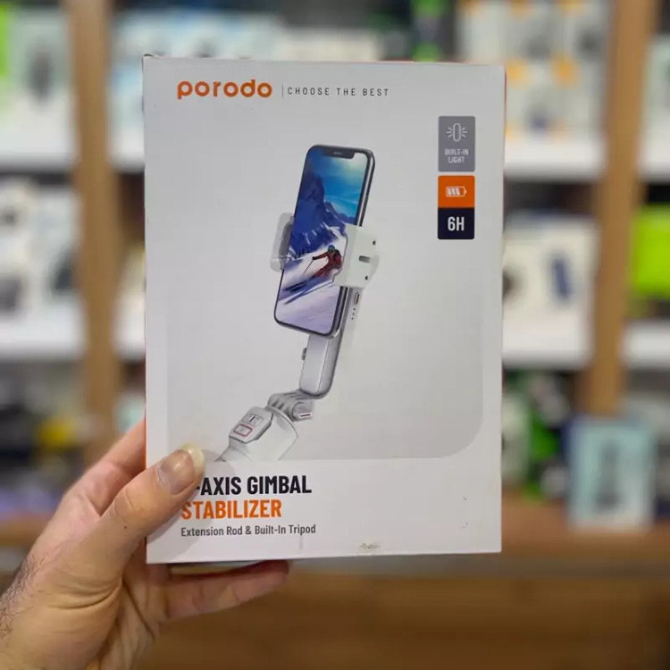 گیمبال و استبلایزر موبایل پرودو Porodo 2-Axis Gimbal Stabilizer PD-ASGMRC دارای سه پایه