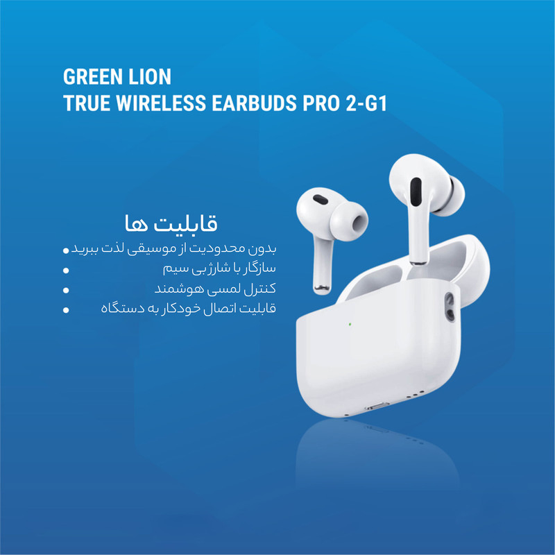 هندزفری بلوتوثی گرین لاین مدل Earbuds Pro 2 محصولی با کیفیت بالا و خوش ساخت است که برای ساخت این هدفون از مواد اولیهی با کیفیت و مرغوبی استفاده شده است. این ویژگی، یکی از نشانههای هر دستگاه اورجینالی است. به همین دلیل چنین وسایلی طول عمر بالایی دارند.از مزایای آن مقاومت در برابر آب و تعریق است و در نتیجه به هنگام استفاده در روز های بارانی یا انجام فعالیت هایی که موجب تعریق شما می شود با مشکل رو به رو نخواهید شد.هندزفری بلوتوثی گرین لاین مدل Earbuds Pro 2 مجهز به یک پنل لمسی می باشد که به سادگی از این طریق می توانید فعالیت هایی همچون کنترل میزان صدا، رد و پخش موسیقی و پاسخ به تماس را تنها با یک لمس اجرایی نمایید.نحوه ی قرار گیری درون گوشی در کنار طراحی مطابق با ارگونومی سبب ایجاد حس راحتی در کاربران شده و این تضمین را به شما می دهد که به هنگام انجام فعالیت های پر تحرک در گوش شما ثابت می ماند و از گوشتان بیرون نیافتد.هندزفری بلوتوثی گرین لاین مدل Earbuds Pro 2 توسط بلوتوث نسخه 5.0 به سایر دستگاه های هوشمند متصل می شود تا امکانات گسترده ای را در اختیار شما قرار دهد از جمله ویژگی های نسخه بلوتوث 5.2 این است که به شما اجازه می دهد تا شعاع 10 متر نسبت به دستگاه متصل شده از کار با هدفون نهایت لذت را ببرید و انتقال صدا با کیفیت بالاتری اتفاق می افتد.این هدفون از کیفیت صدای مناسبی برخوردار است تا از گوش سپردن به موسیقی مورد علاقه ی خود نهایت لذت را ببرید همچنین میکروفون داخلی آن از قابلیت حذف نویز پشتیبانی می کند بنابراین صدای دریافتی را به صورت کامل فیلتر کرده و بسیار شفاف با وضوح بالا ارسال می نماید تا مکالمه ای با کیفیت را تجربه کنید.به همراه این هدفون یک عدد کاور کیس ایرپاد پرو 2 از جنس Silicone نیز داخل بسته بندی نیز میباشد و علاوه بر این ایرپاد دارای خاصیت auto-pop ups هست به این صورت که با باز شدن درب کیس به صورت خودکار نوتفیکیشن در گوشی های آیفون بالا میاید و میتوانید خیلی راحت به ایرپاد اتصال پیدا کنید و همچنین گوشی های اندروید نیز در قسمت بلوتوث نیز میتوانند متصل شوند.